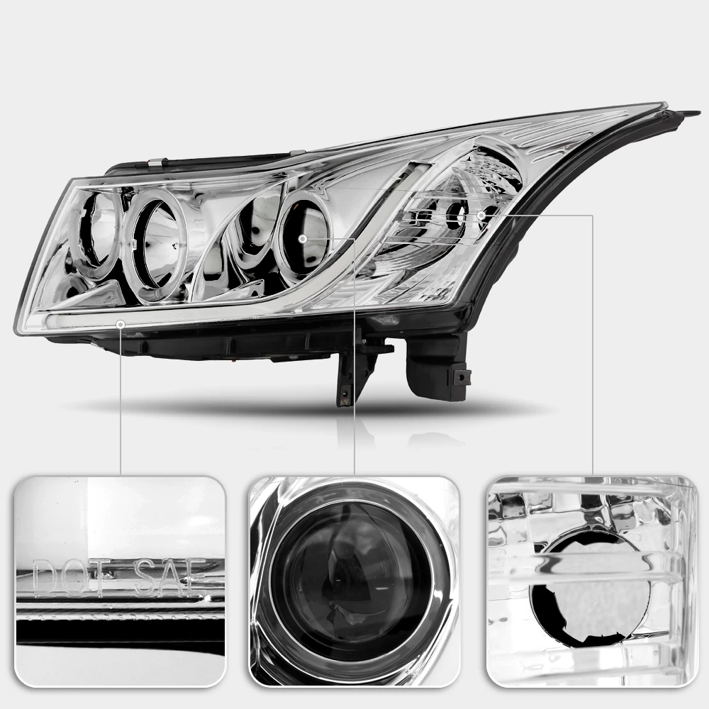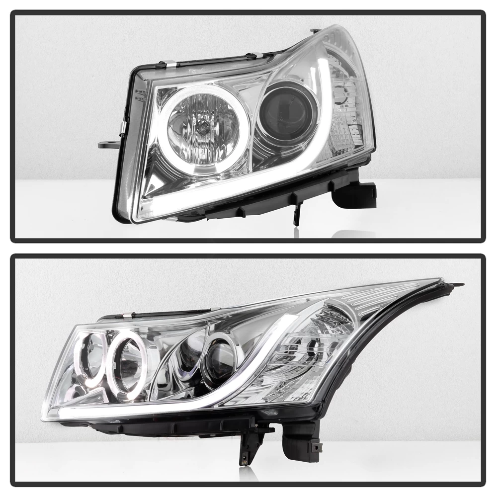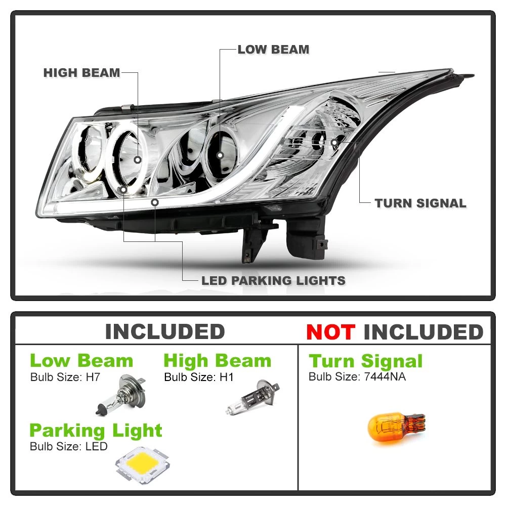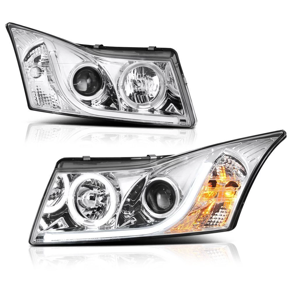 You are looking at a complete set including left and right side aftermarket projector headlights. The design of projector designed headlights was originated from racing vehicles driven at night. Our headlights come included with halogen bulbs and a wiring harness for a quick plug-n-play installation. Many of the aftermarket projector headlights will not use the same OEM bulb. The front lens is a clear, top-quality plexi glass. Halos or angel eyes will require wiring to an alternate power source. Whether you are looking for specialty projector headlights or replacement headlights, you will find sleek, custom look to it at night as people see you projectors in their rear view mirrors.