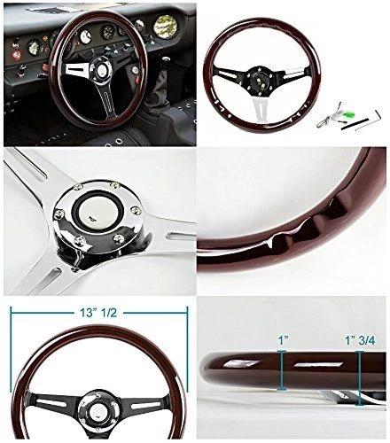 Made of light-weight aluminum spoke and polished wood/ plastic composite steering wheel.