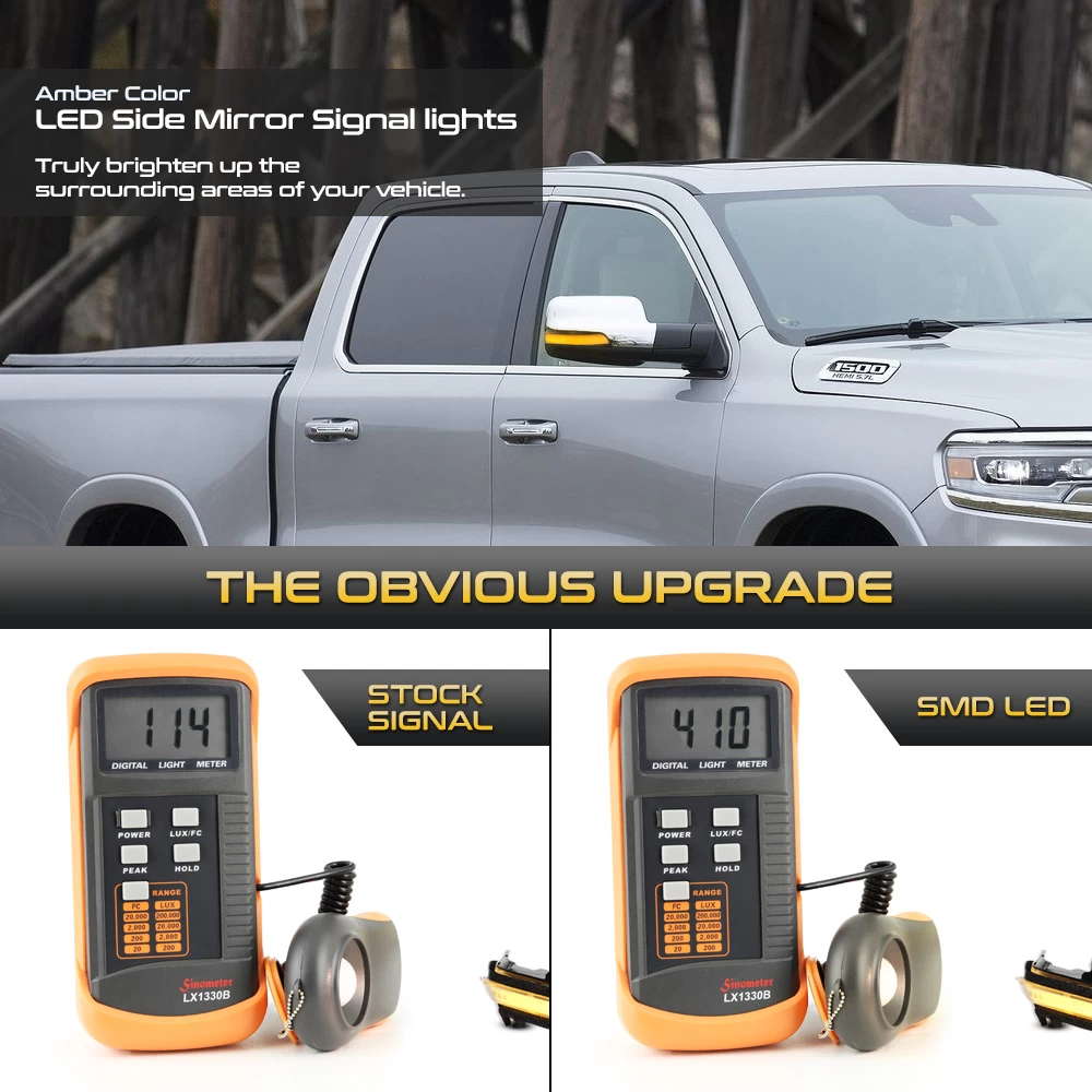 - Upgrade from factory mirror lights to LED with improved output