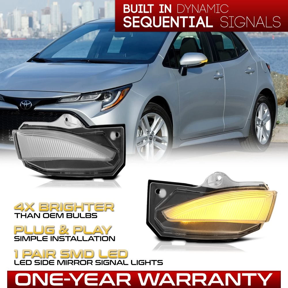 Sequential LED Side Mirror Turn Signal Lamps Set For 2019-2022 Toyota Corolla
