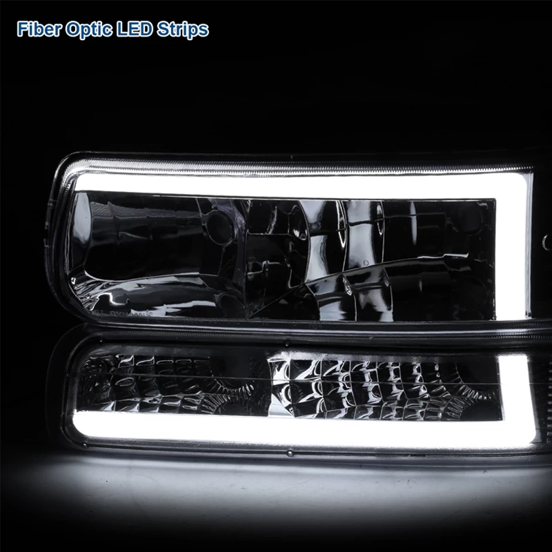 Upgrade the look and performance of your 1999-2002 Chevy Silverado or 2000-2006 Tahoe / Suburban with our replacement headlights featuring an optic-style LED DRL (Daytime Running Light) bar, available exclusively at ProTuningLab. These headlights are designed to give your vehicle a sleek and modern appearance while improving visibility on the road. The optic-style LED DRL bar adds a distinctive and attention-grabbing element to your Chevy Silverado or Suburban, making it stand out from the crowd. Crafted with superior quality and durability in mind, our replacement headlights are built to withstand the elements and provide long-lasting performance. Installation is quick and hassle-free, thanks to their precise fitment, ensuring a seamless upgrade to your vehicle. Elevate the style and visibility of your 1999-2002 Chevy Silverado or Suburban / Tahoe with ProTuningLab’s replacement headlights featuring an optic-style LED DRL bar. Shop now and experience a new level of style and functionality for your vehicle.