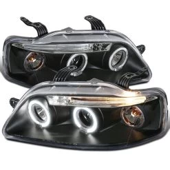 2004-2006 Chevy Aveo Angel Eye Halo & LED DRL Projector Headlights – Black