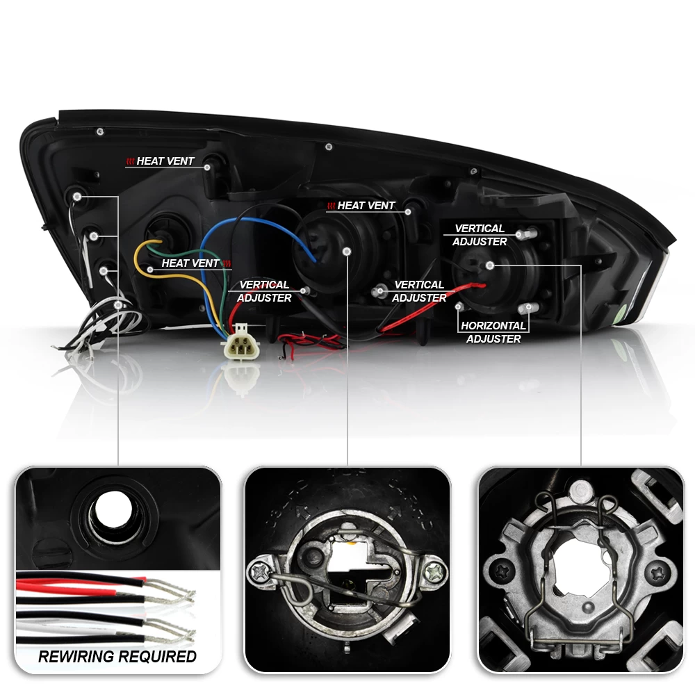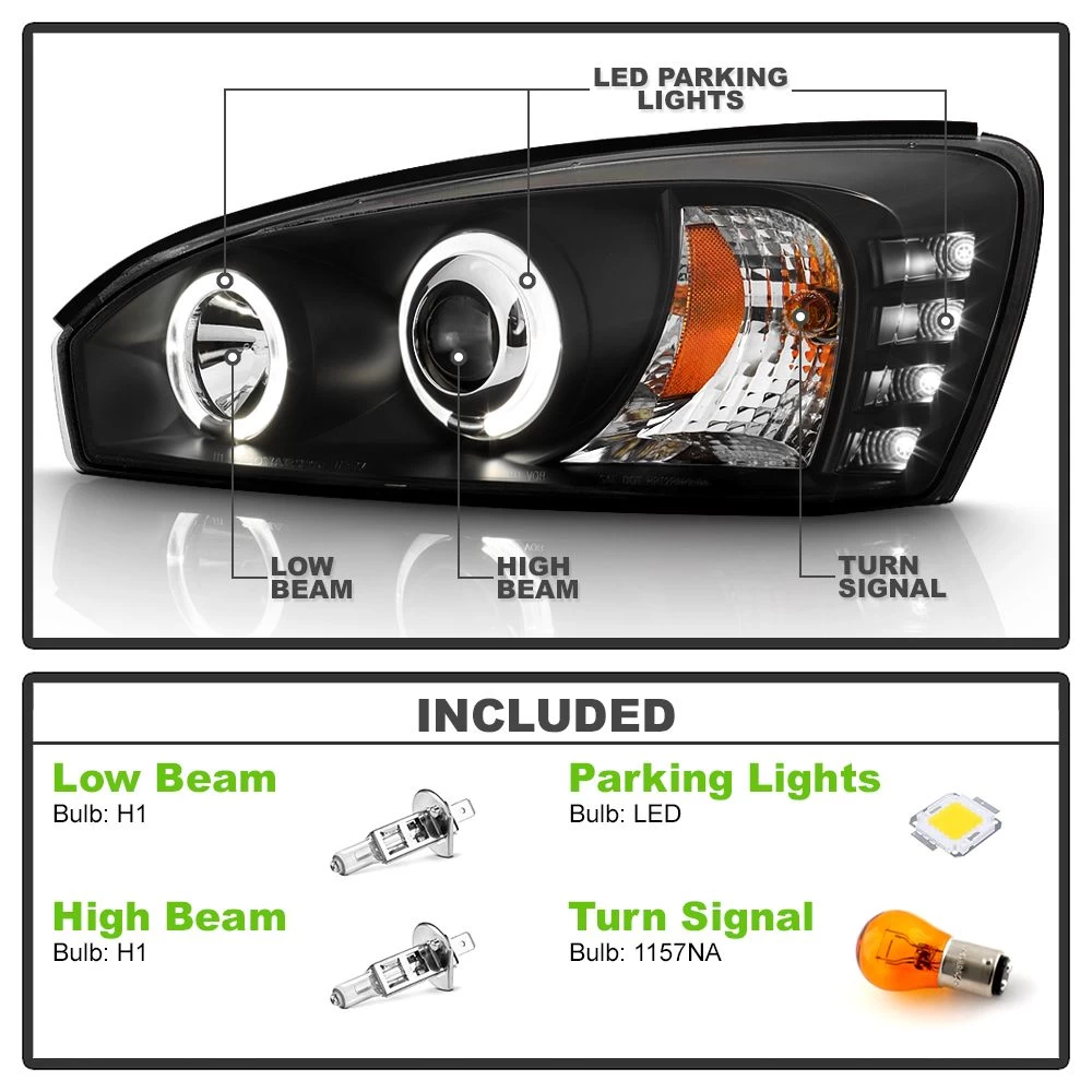 2004-2007 Chevy Malibu Angel Eye Halo & LED Projector Headlights – Black
