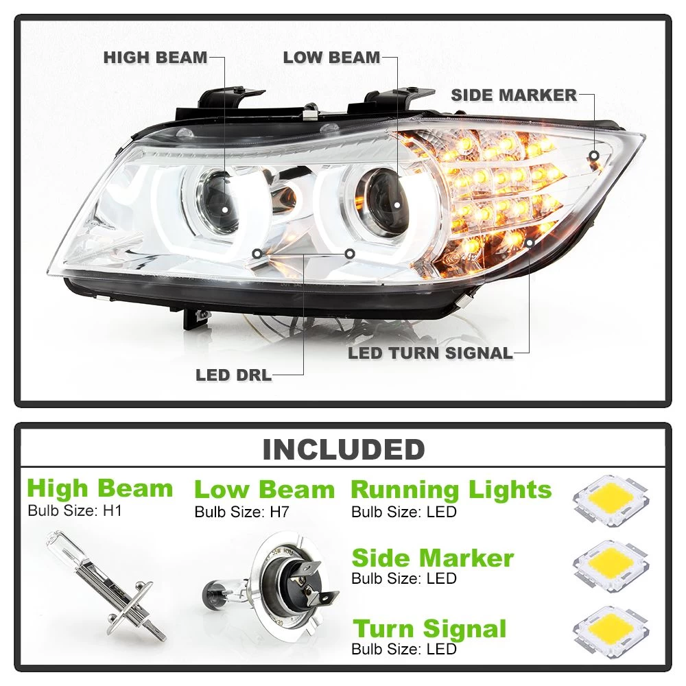 - Dual Angel Eye Halo Rings / LED Turn Signal