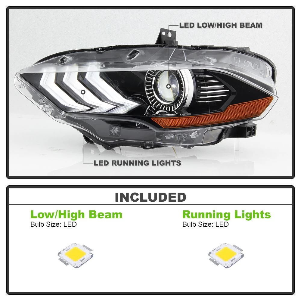 2018-2020 Ford Mustang Factory LED Projector W/ DRL Tube Headlights – Black
