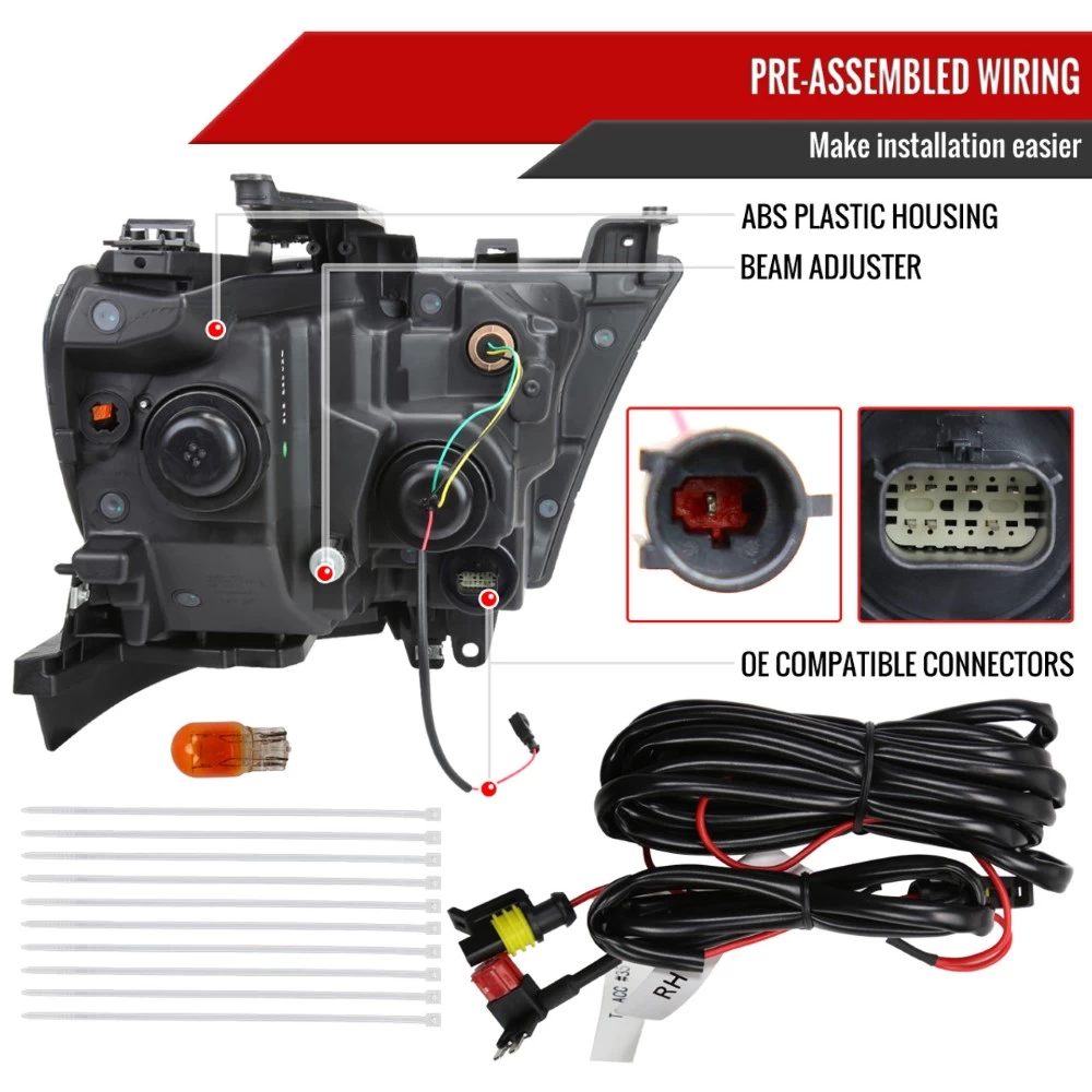 - Uses 9005 Low Beam / H11 High Beams (Not Included, Re-Use OEM Bulbs), 7443NA 12V Turn Signal Bulbs Included