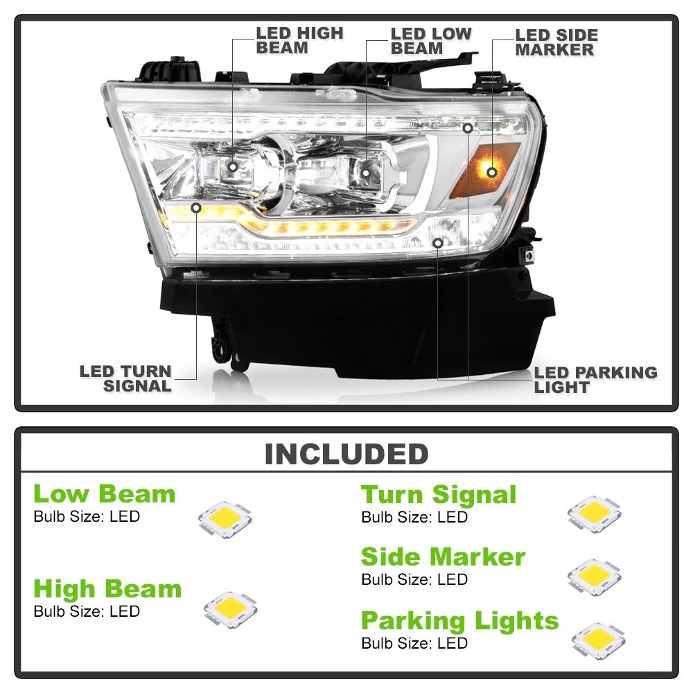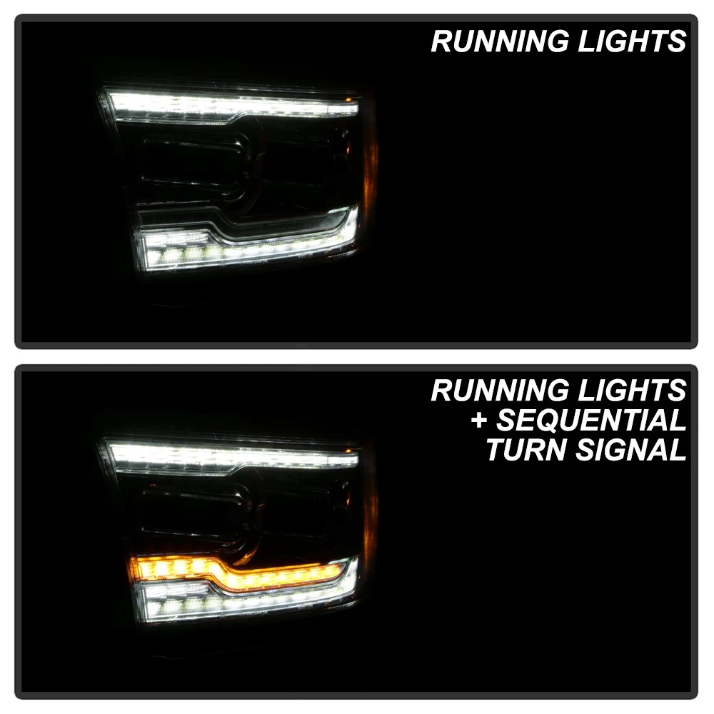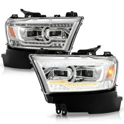 2019-2022 Dodge Ram 1500 LED DRL Strip / Sequential Turn Projector Headlights – Chrome