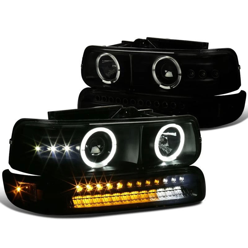 99-02 Chevy Silverado / 00-06 Suburban LED & Halo Projector Headlights + LED Bumper Lights – Smoked