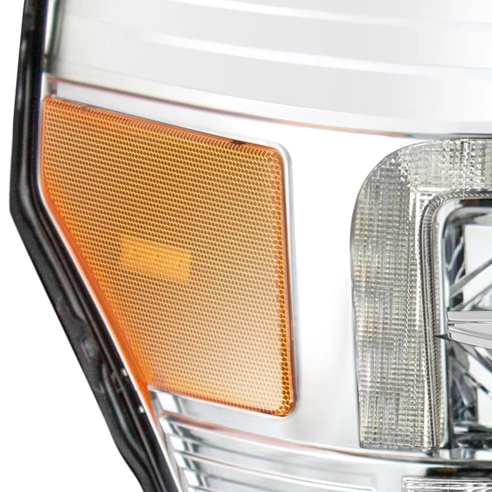 We designed these Ford Super Duty Luxx-series projector headlights based on the 4th gen Super Duty look and apply on the 3rd gen Super Duty. We apply switchback LED light tube surrounding the light as a DRL and sequential turn signal. Furthermore, we also add a clear lens at the middle of the headlights as an addition turn signal bulbs like the 4th and 5th gen Super Duty. The headlights also comes with activation light feature, which is a running light when you unlock your Super Duty. The top projector is for low beam, while the bottom projector is for high beam. The headlights are using LED chips, developed by our own factory, as light output for low beam and high beam.