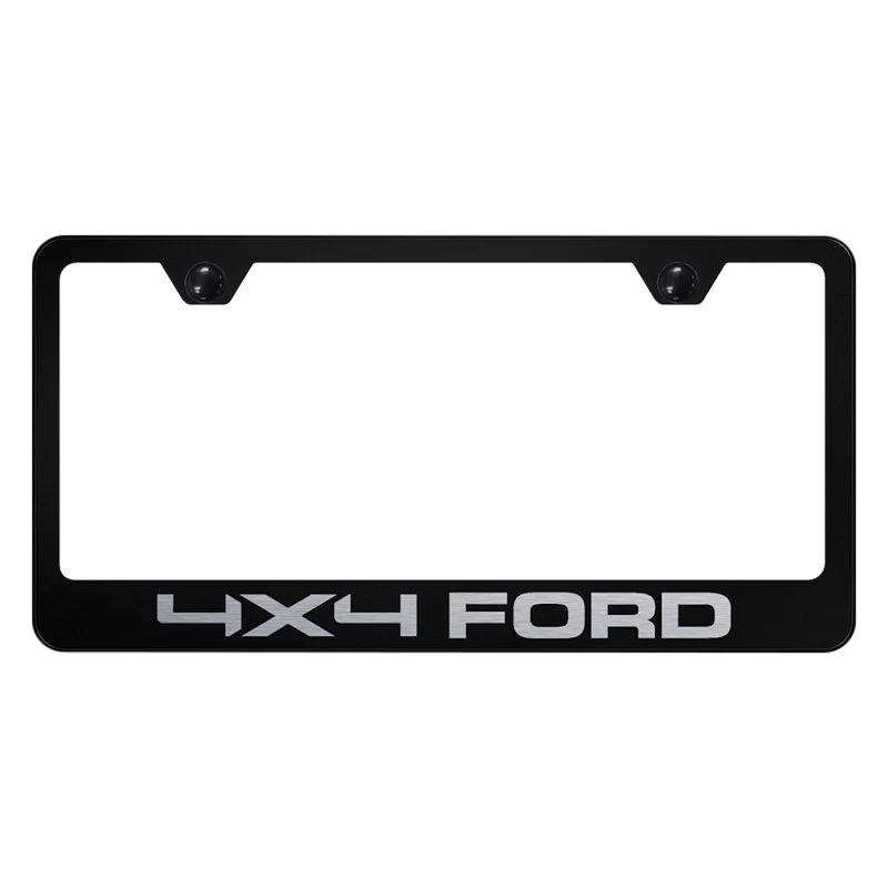 Universal License Plate Frame with Laser Etched 4×4 Ford Logo by Autogold®. Dimensions: 6.25″ x 12.25″. Material: Stainless Steel. Add a touch of personalization to your prized investment with this first-grade Autogold license plate frame that is superior in design and durability. Crisp laser etched lettering in factory or scripted fonts. Exceptional in both quality and design, these stainless steel license frames are manufactured using the finest materials and workmanship. License frames include vehicle specific hardware and matching theft deterrent caps to conceal unsightly hardware.