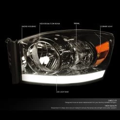 06-08 Dodge RAM Optic-DRL Replacement Headlights – Smoked