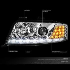 02-04 Audi A6 [Halogen Model] LED DRL / Signal Projector Headlights – Chrome
