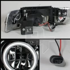 99-04 Ford Mustang 1-Piece Angel Eye Halo & LED Projector Headlights – Smoked