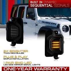 18-22 Jeep Wrangler / Gladiator Sequential LED Side Mirror Lights – Smoked