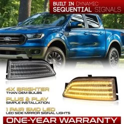 19-22 Ford Ranger Sequential Amber LED Side Mirror Lights – Clear