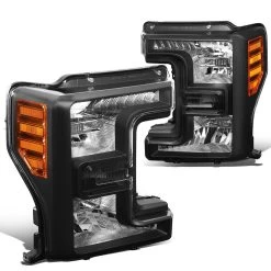 17-19 Ford SuperDuty F250 F350 Replacement Headlights – Black / Amber