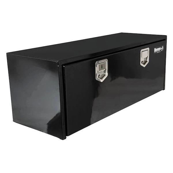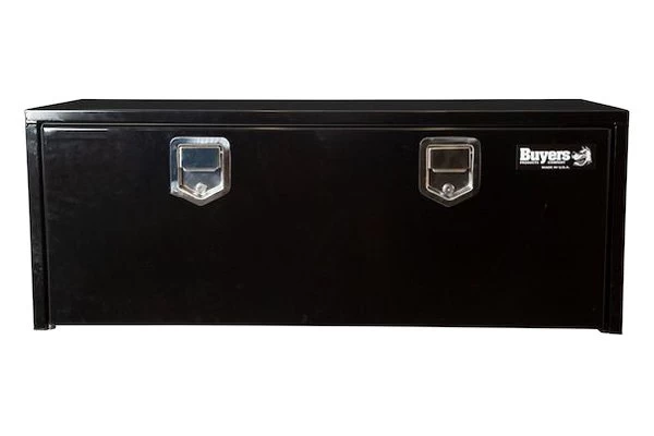 Universal Single Drop Door Underbody Tool Box with Rotary Paddle Latch (1702115) by Buyers®. Dimensions: 60″ Width x 18″ Depth x 18″ Height. Finish: Black Powder Coated. Material: Carbon Steel. Number of latches: 2. Protect and easily access your equipment with the Buyers Products Black Steel Underbody Truck Box with Paddle Latch. Available in a variety of sizes, each professional grade box is made of strong 14 Ga steel with a 12 Ga drop door that can handle the harshest job sites. Then its powder coated black inside and out for superior corrosion resistance and style. The continuous hidden hinge and replaceable gasket system keep weather and grime away from your tools. Aircraft grade cables help prevent damage. The locking, stainless steel paddle latch provides a tight seal and deters theft. Mount the box on any flat surface or under your truck using Buyers Products Mounting Brackets.