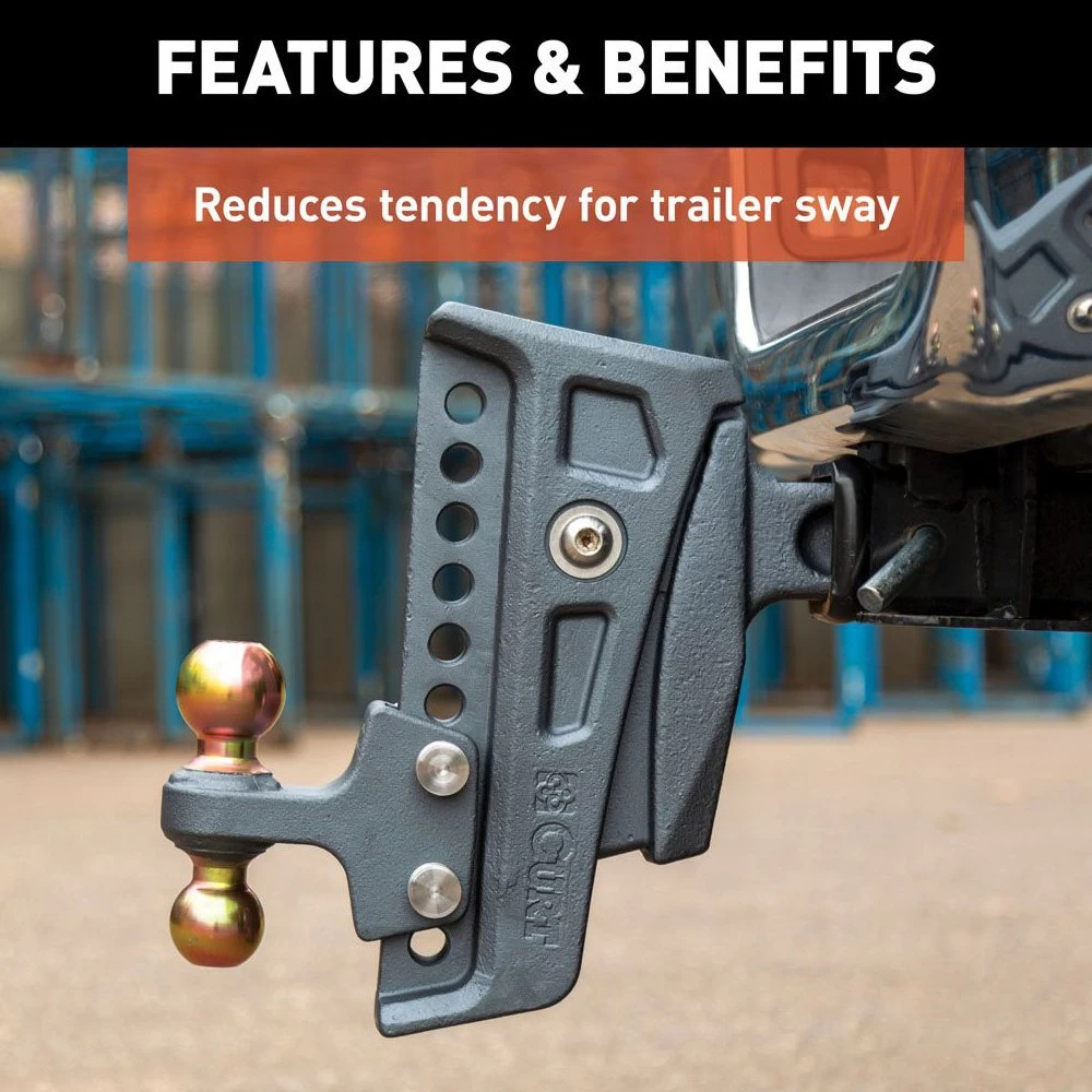 The CURT ball mount dampens jerking and jarring from bumps and potholes for smoother towing.
