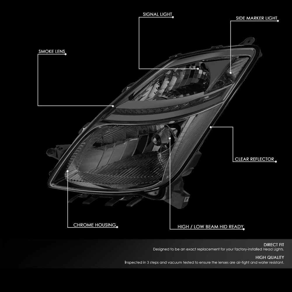 DNA 2006-2009 Toyota Prius Front Bumper HID Xenon Headlight Headlamps – Smoked Lens / Chrome Housing
