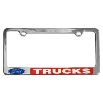 Universal Ford Motor Company 2-Hole Chrome License Plate Frame with Trucks Logo and Ford Emblem by Eurosport Daytona®. Material: Brass and Zinc Alloy. Frame construction with a two-hole wide bottom design. Go with this high-grade license plate frame that is developed to withstand any elements and always be ready to serve. The product was designed with reliability and workmanship in mind for the latest in quality. Plus, it ensures easy and hassle-free installation.
