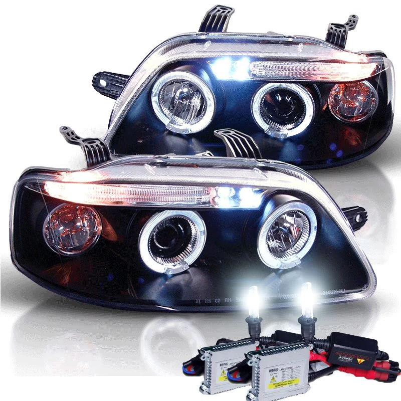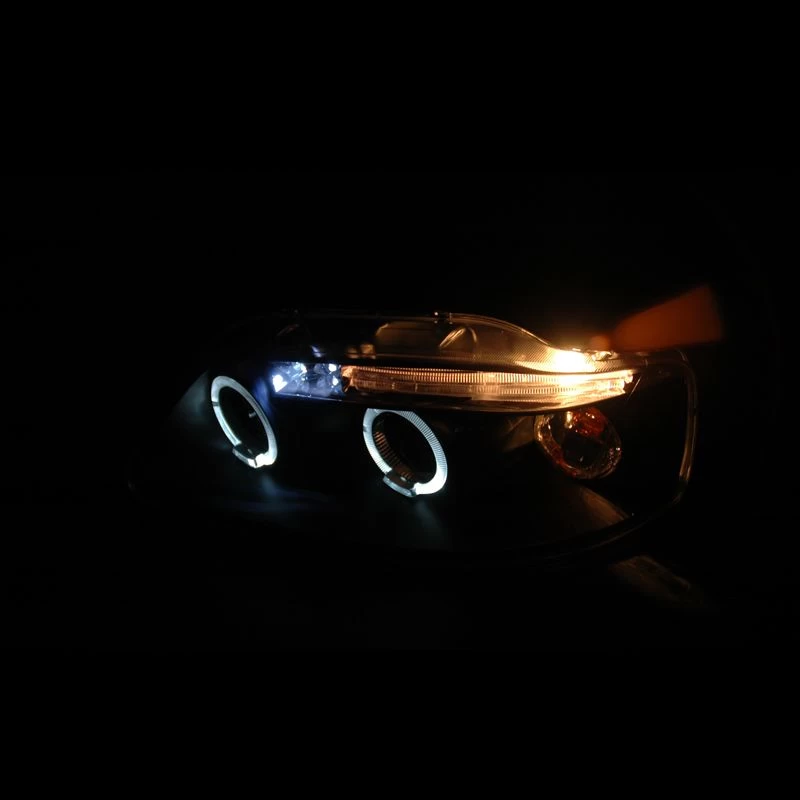 - 1-Pair Projector Headlights with LED & Angel Eye Halo (Left + Right Side)