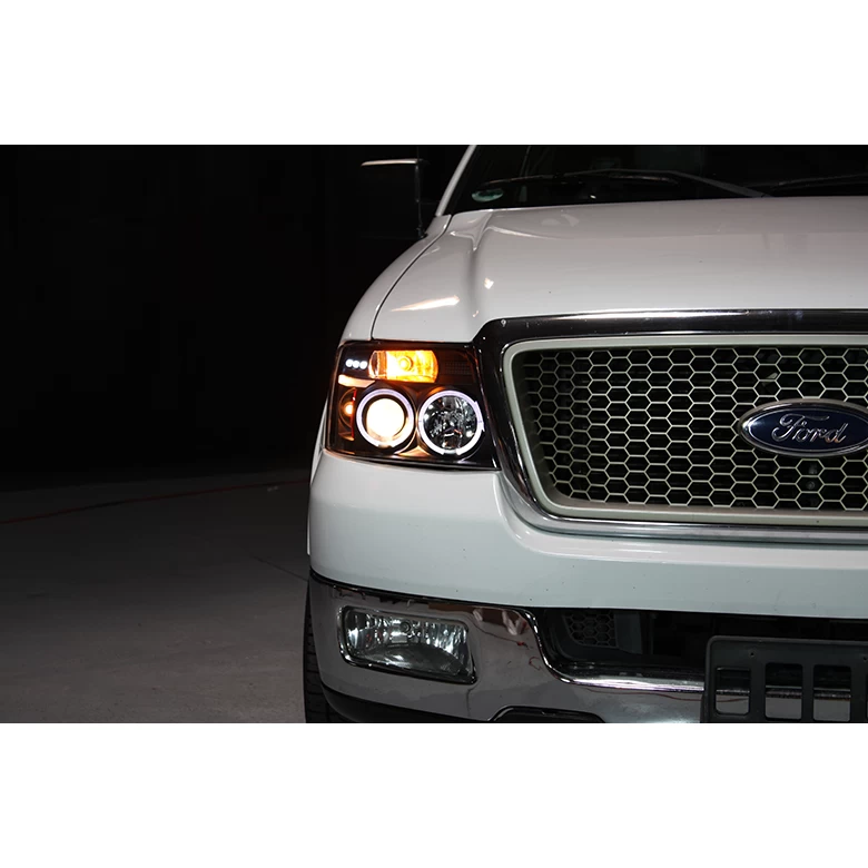 - 1-Pair Projector Headlights with LED & Angel Eye Halo (Left + Right Side)