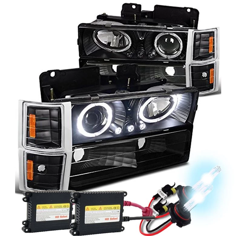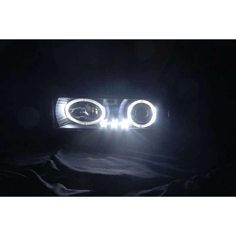 - 1-Pair Projector Headlights with Angel Eye Halo (Left + Right Side)