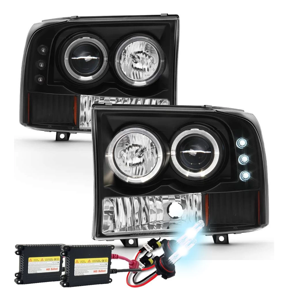 - 1-Pair Projector Headlights with LED & Angel Eye Halo (Left + Right Side)