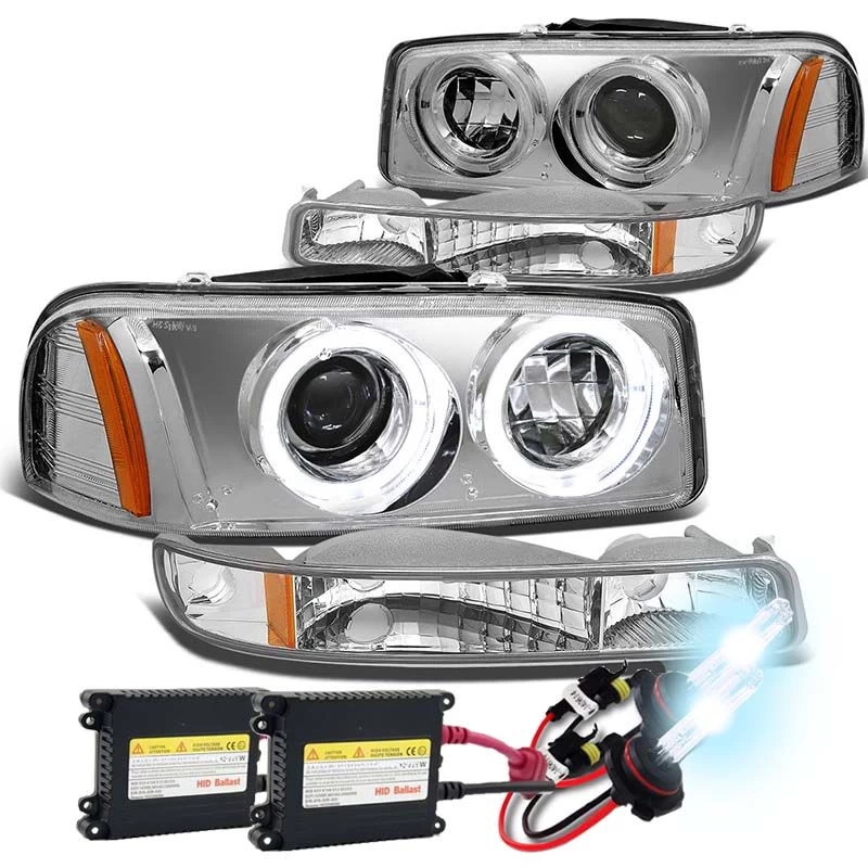 - 1-Pair Projector Headlights with Angel Eye Halo (Left + Right Side)