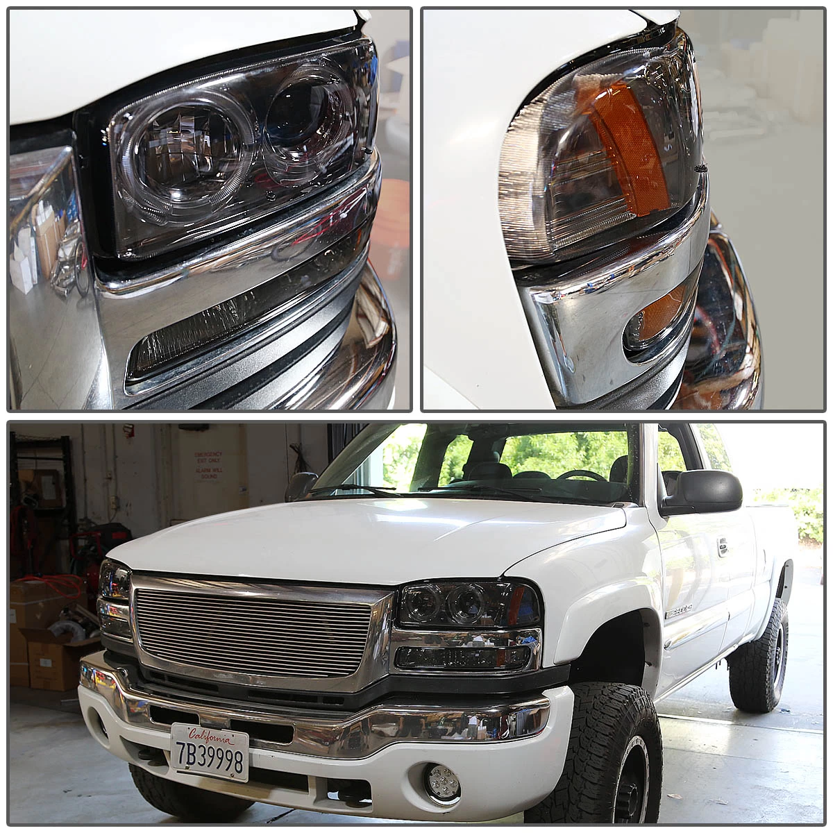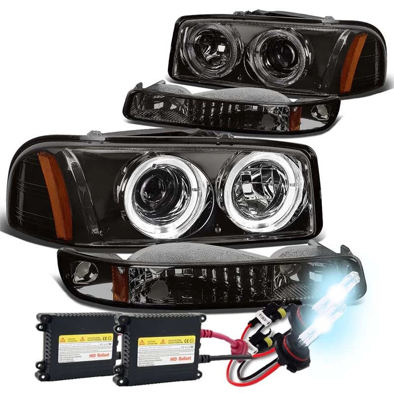 - 1-Pair Projector Headlights with Angel Eye Halo (Left + Right Side)