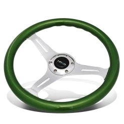 NRG 35Cm Chrome 2-inch Deep Dish Spoke Green Colored Wood Grip Racing Steering Wheel