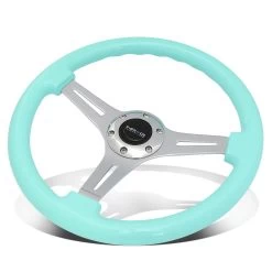 NRG 35Cm Chrome 2-inch Deep Dish Spoke Mint Flost Colored Wood Grip Steering Wheel