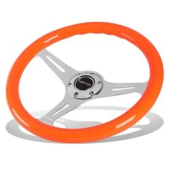 NRG 35Cm Neon Orange Wood Grain Grip Chrome Spoke Steering Wheel W/Horn Button