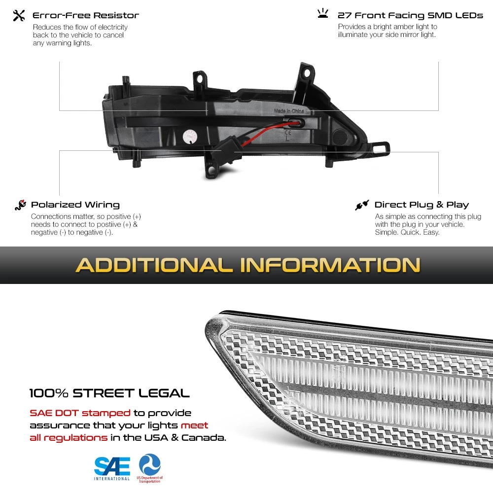 - Direct Replacement of Factory Side Mirror Signal Lights
