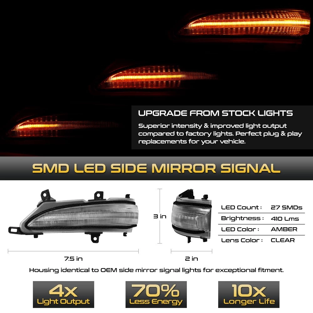 Sequential Amber LED Side Mirror Signal Lights For 2013-2021 LX570 2010-2022 GX460 – Clear Lens