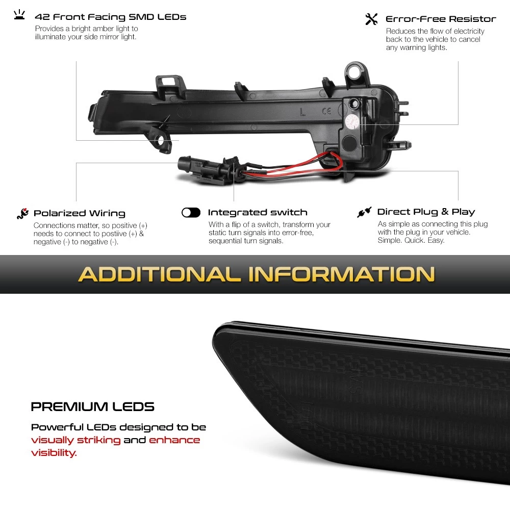 - Direct Replacement of Factory Side Mirror Signal Lights