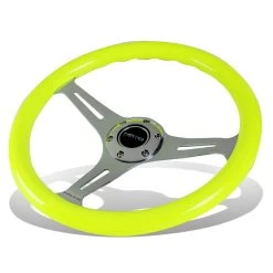 NRG 35Cm Neon Yellow Wood Grain Grip Chrome Spoke Steering Wheel W/Horn Button