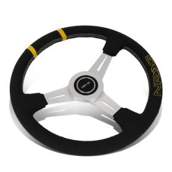 NRG 36Cm Silver Spoke Bumble Bee Leather Grip Steering Wheel W/Dual Center Mark