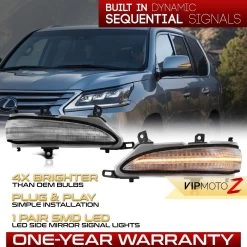 Sequential Amber LED Side Mirror Signal Lights For 2013-2021 LX570 2010-2022 GX460 – Clear Lens