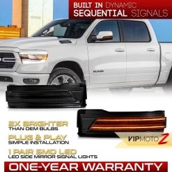 Sequential Amber LED Side Mirror Signal Lights For 2019-2023 Dodge Ram 1500 – Smoked Lens
