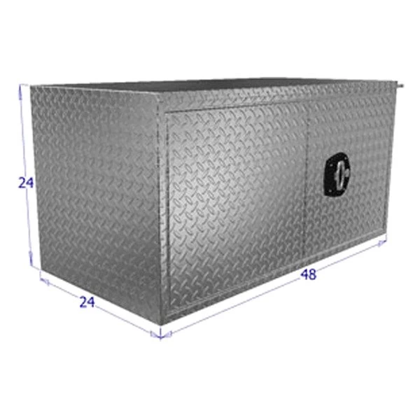 Universal Brute™ HD Standard Double Doors Underbody Tool Box (HBD2448) by Unique Truck Accessories®. Dimensions: 48″ Length x 24″ Width x 24″ Height. Finish: Bright. Material: Aluminum. Heavy Duty cargo management with an integrated locking system that provides security and peace of mind. Brute™ tool boxes are proudly designed, engineered and manufactured in the U.S.A.