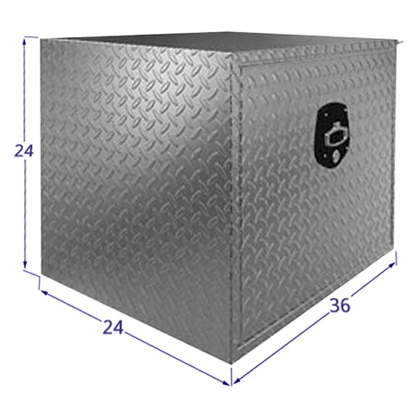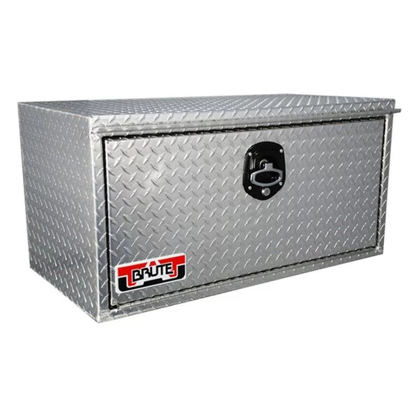 Universal Brute™ HD Standard Single Drop Down Door Underbody Tool Box (HUB2436) by Unique Truck Accessories®. Dimensions: 36″ Length x 24″ Width x 24″ Height. Finish: Bright. Material: Aluminum. Heavy Duty cargo management with an integrated locking system that provides security and peace of mind. Brute™ tool boxes are proudly designed, engineered and manufactured in the U.S.A.