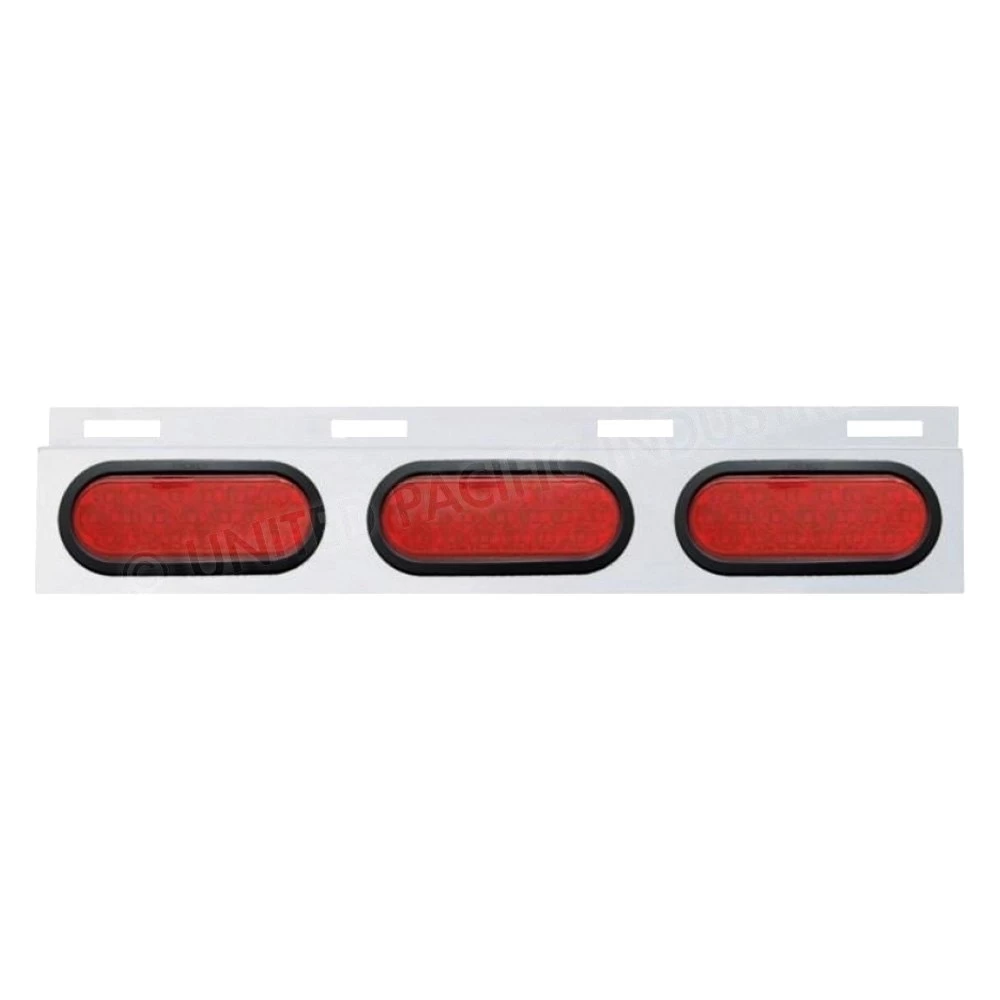 Universal Stainless Steel Top Mud Flap Plate with Three 19 LED 6″ Oval Lights (63710) by United Pacific®, 1 Piece. With Three 19 LED 6″ Oval Lights and Grommets. Red LED/Red Lens. This top-grade product is expertly made in compliance with stringent industry standards to offer a fusion of a well-balanced design and high level of craftsmanship. Manufactured from industry-leading materials using up-to-date equipment, it ensures everlasting reliability and enduring value. This product is distinguished by total quality assurance, unsurpassed by anybody else.