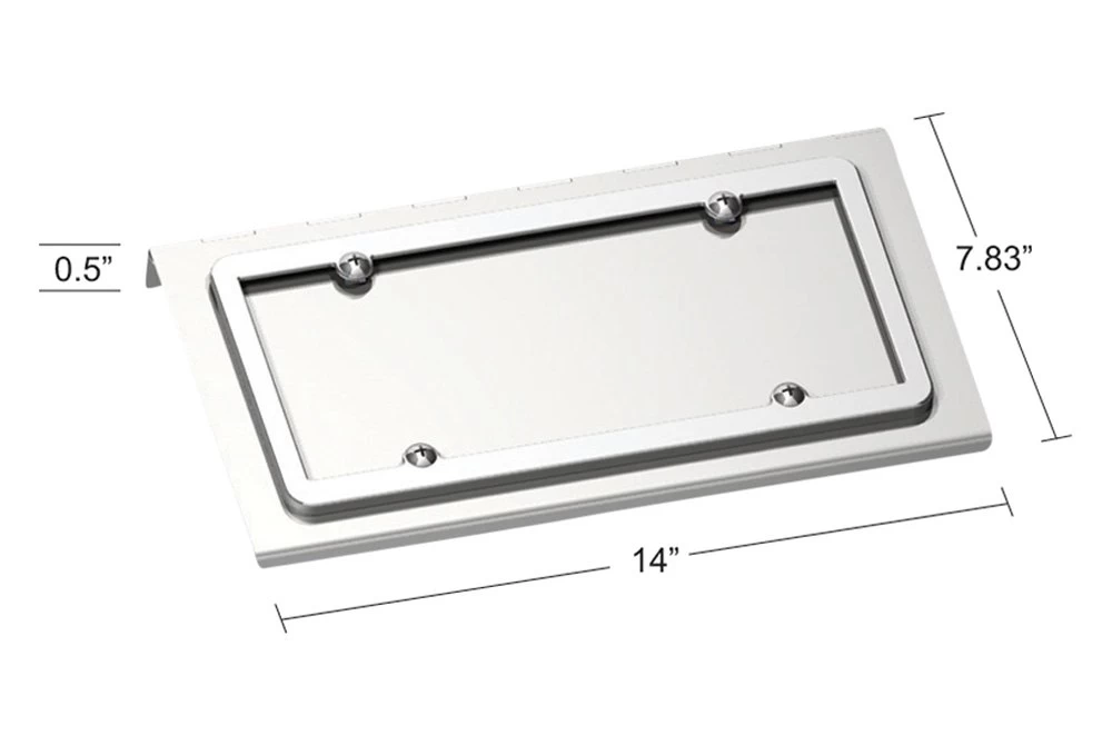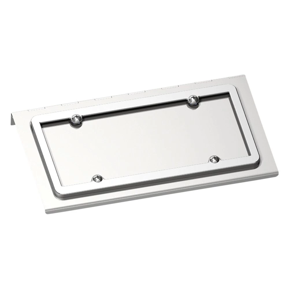 Universal Polished License Plate with Swing Plate by United Pacific®. Material: Stainless Steel. This product is made of high-quality materials to serve you for years to come. Designed using state-of-the-art technology and with customers in mind, this product by United Pacific will last a lifetime. It will meet your needs and deliver great quality at an affordable cost.