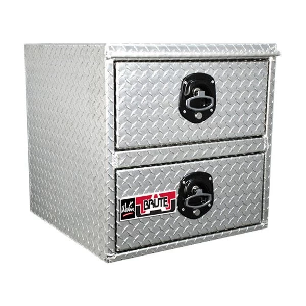 Universal Brute™ HD Two Drawers Underbody Tool Box by Westin®. Dimensions: 30″ Length x 24″ Width x 24″ Height. Finish: Bright. Material: Aluminum. Heavy Duty cargo management with an integrated locking system that provides security and peace of mind. Brute™ tool boxes are proudly designed, engineered and manufactured in the U.S.A.